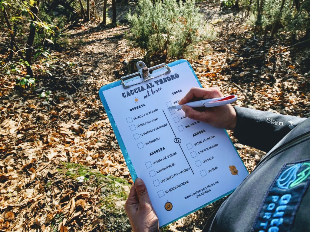 - La caccia al tesoro del bosco: costruite una scheda come quella del bingo con un elenco di voci da spuntare. I diversi items possono essere raggruppati in categorie sensoriali (osserva, annusa, vedi, senti) per acuire i 5 sensi! Qui di seguito vi regaliamo la nostra versione della caccia al tesoro già pronta per essere utilizzata.