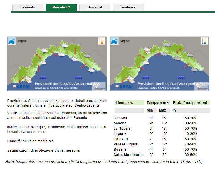 Infine leggi un bollettino locale (a differenza del modello è stato elaborato da persone che conoscono bene la geografia della zona, e non computer). per esempio, per la Liguria io uso quello emesso dal Limet e quello dell’Arpal.