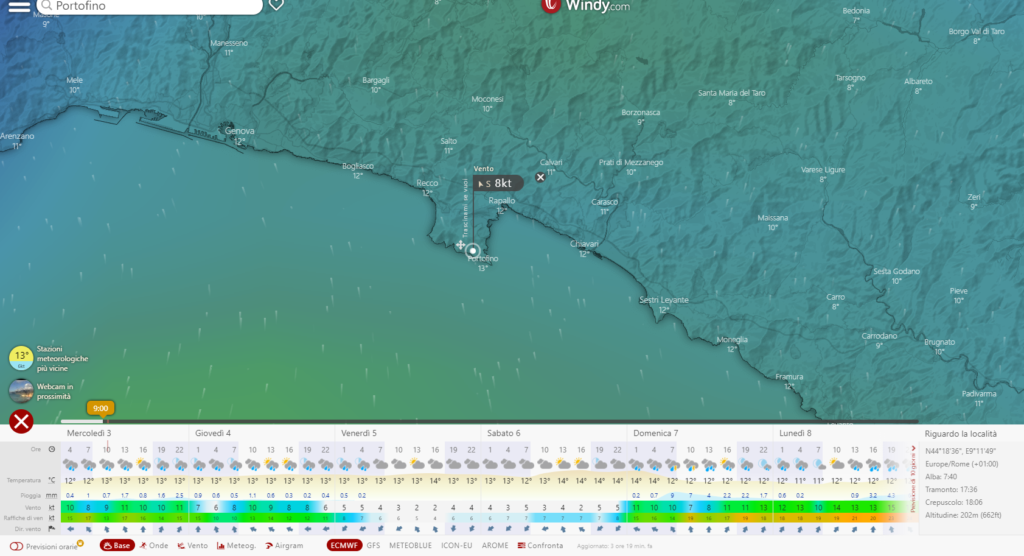 Ipotizziamo che tu stia programmando una gita sul monte di Portofino (ne parliamo qui) che prevede una tappa a Punta Chiappa per un giro di Snorkeling. Voglio conoscere il meteo (e il meteo mare) per decidere l’abbigliamento, cosa mettere nello zaino e per svolgere il tutto in sicurezza.