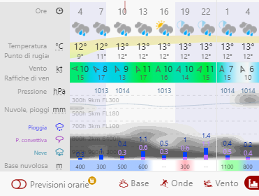 Poi consulta un modello atmosferico: uno dei migliori è Windy (usa il modello ECMWF, uno dei più attendibili per l’Europa). Particolarmente interessanti le funzionalità “confronto”, ti offre un paragone tra 5 modelli diversi (per semplificare: se sono tutti d’accordo l’attendibilità è alta, viceversa..) Per il vento molto molto valide le mappe di Sinbad.